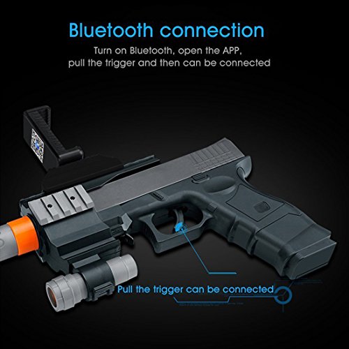 -. Feature : Augmented Reality(AR): AR-GUN is a portable gaming gun designed for cellphones, which combines the real world and the virtual gaming world seamlessly. With the AR-Gun APP, the real world will be integrated with the virtual game world to enhance the realistic experience, make the player via the visual to enjoy the interation between reality and virtual. / IOS and Android Competiable:Compatible with smartphones varying from 2.16" to 3.70" of width.Suitable for iPhone 5/5S/6/6 Plus/6S/6S Plus/7/7 Plus, Samsumg Galaxy series and other Android phones. / Bluetooth V4.0 Connection: Downloading AR-GUN APP(Two APPs to choose,Under 16 years/Up 16 years,Games will update timely) by scan the QR codes or from google play or app store, and pull the trigger for 3 seconds to connect with your cell phones via bluetooth easy and fast, wireless, steady and low power consumption. / Multi-scenarios: With this portable AR Gun, you can play games indoors and outdoors. Just pick up the AR Gun, trace and shoot the targets by moving the gun 360° or moving around to experience a truly immersive gaming experience from the reality and virtual images. Enjoy the immersive game battles. / Eco-Friendly: AR Gun made of ABS material, light-weighted but solid/durable, fixed by screws with smooth surface and fine workmanship.Perfect gift for both adults and kids.