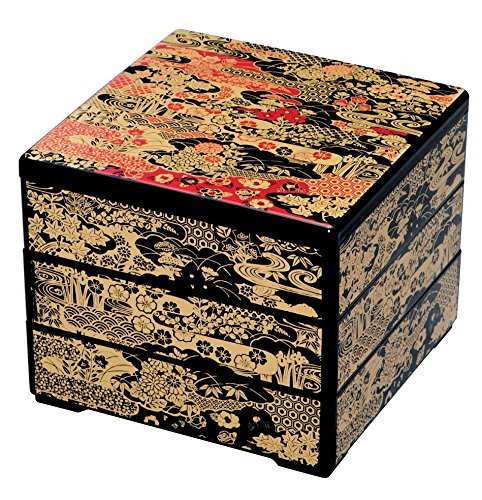-. Title : Yu-zen Jubako-box : Black/red (3-tiered)