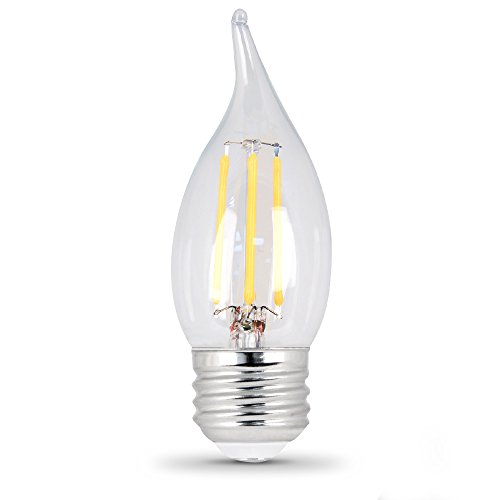 Feit Electric BPEFC25/827/LED/2 25W Equivalent Clear Dimmable Chandelier Flame Tip Med Base LED Light Bulb (2 Pack), Soft White