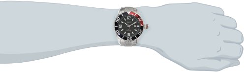 -. Feature : Black and Red, stainless steel, rotating bezel / Date displayed at the 3 o'clock position / Silver-tone stainless steel bracelet / Precise quartz movement / Water resistant to 165 feet (50 M): suitable for swimming and showering