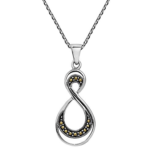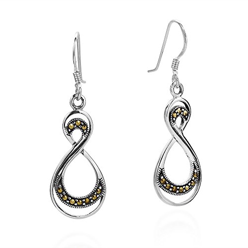 Artisan Amp presents this symbolic double infinity necklace and earrings jewelry set. Express your affection with this dazzling jewelry set that conveys the message 'I'll love you forever'. The set is crafted of .925 sterling silver and embellished with iron pyrite. PLEASE NOTE: The handcrafted nature of this product will produce minor differences in design, sizing and weight. Variations will occur from piece to piece, measurements may vary slightly.Includes an original AERAVIDA organza jewelry pouch (comes in various colors), also handmade by our Artisans. Perfect for gift giving to someone special or keep for yourself!