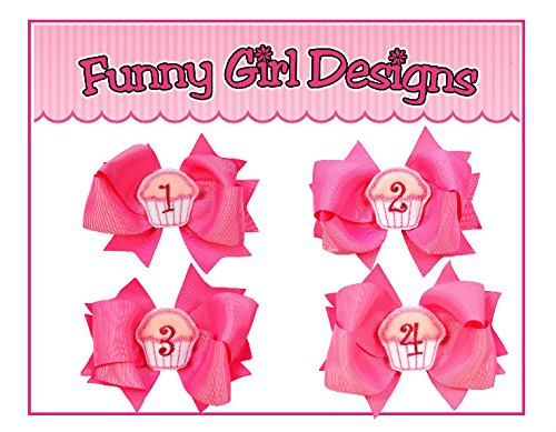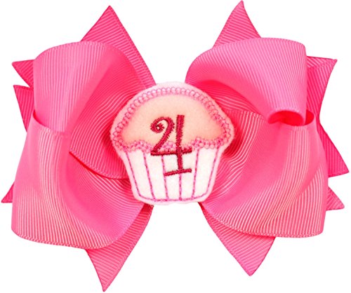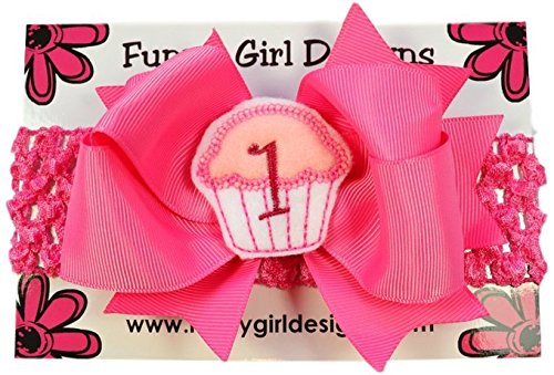 Happy Birthday Monogrammed Cupcake Hair Bow w/ Added Crochet Headband