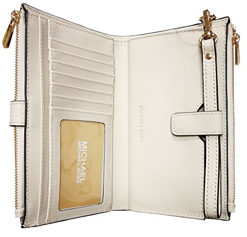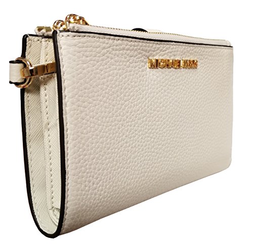 (Michael Kors)/Accessories/Handbags/DIRECT FROM USA/Michael Kors Jet Set Travel Double Zip Wristlet Pebbled Leather Ecru Beige