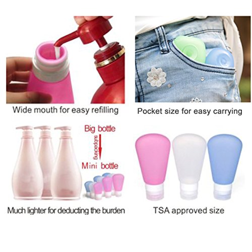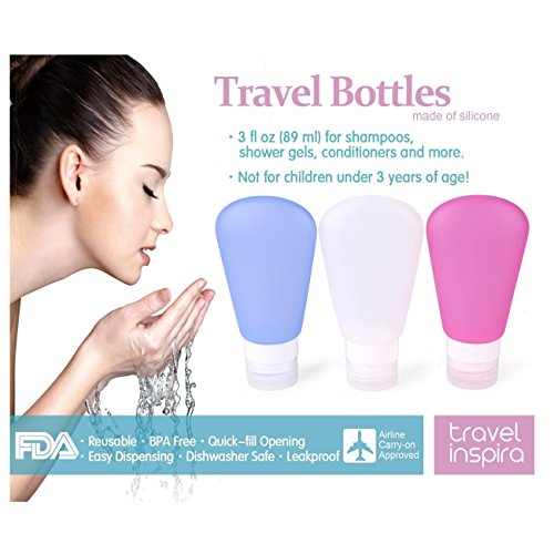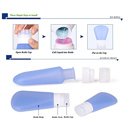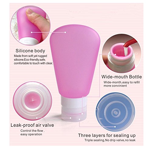 -. Binding : Kitchen -. Brand : SySrion -. Color : Blue, white, pink -. Feature : SySrion Fan-Shaped Silicone Travel Bottle Set, BPA free, Environmentally Friendly, FDA Approved 100% food grade silicone. / Set of 3 small bottles, 3oz, perfect for shampoo, save space, easy to carry, pack with zippered clear bag. Refillable, reusable travel size bottles and clear toiletry bag packaging are TSA approved and safe for carry-on/traveling through airplane. / Leak-proof design bottle lid, create 3 layers protection to prevent drop, leaks and spills. They are the best storage solution for toiletries, made especially for every smart traveler. / Strong suction cup to hang your bottles on your hotel bathroom wall for easy access to your shampoo and body lotions; Large opening makes refills and cleaning easy. You can easily clean them by soaking in warm soapy water or by using the dishwasher. / Satisfaction Guaranteed for 100% Sure. We promise to offer you 100% high quality great product and give you a lifetime warranty. We offer a 5-star customer service because every single customer is incredibly important to us. What we want is to make sure you are buying the best quality product. -. Label : SySrion -. Manufacturer : SySrion -. Model : SySrion Travel Bottles Set -. MPN : SySrion Travel Bottles Set 3oz -. PackageQuantity : 3 -. PartNumber : SySrion Travel Bottles Set 3oz -. ProductGroup : Home -. ProductTypeName : HOME -. Publisher : SySrion -. Size : 3oz -. Studio : SySrion -. Title : SySrion® Travel Bottles Set with Leak Proof Silicone Bottles and Cream Jar in High Quality TSA Approved - Squeezable & Refillable Travel Containers for Shampoo, 3oz, Set of 3