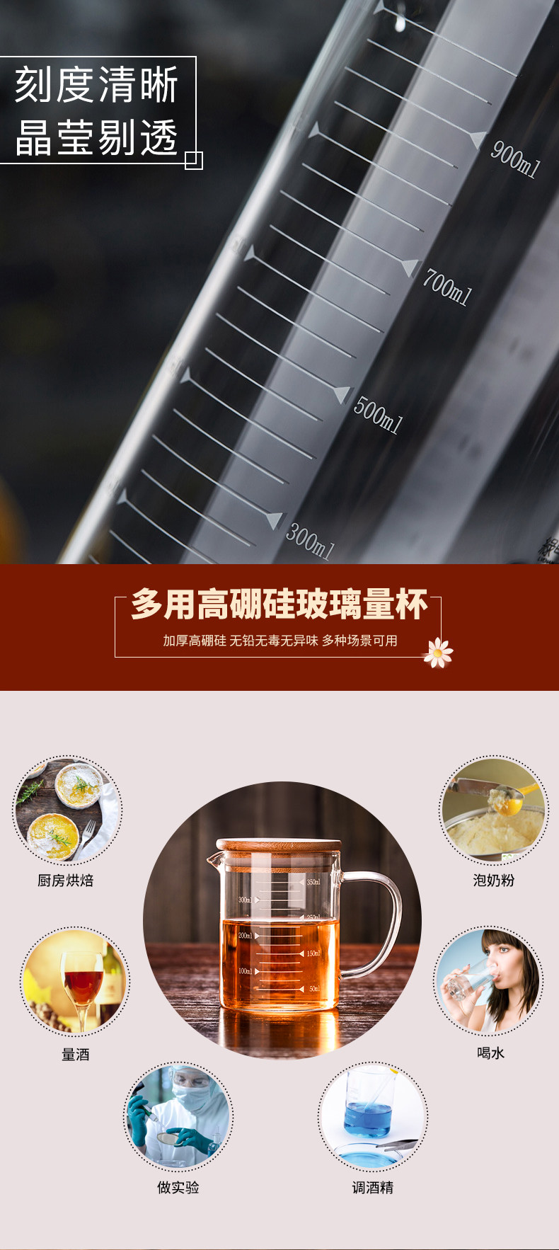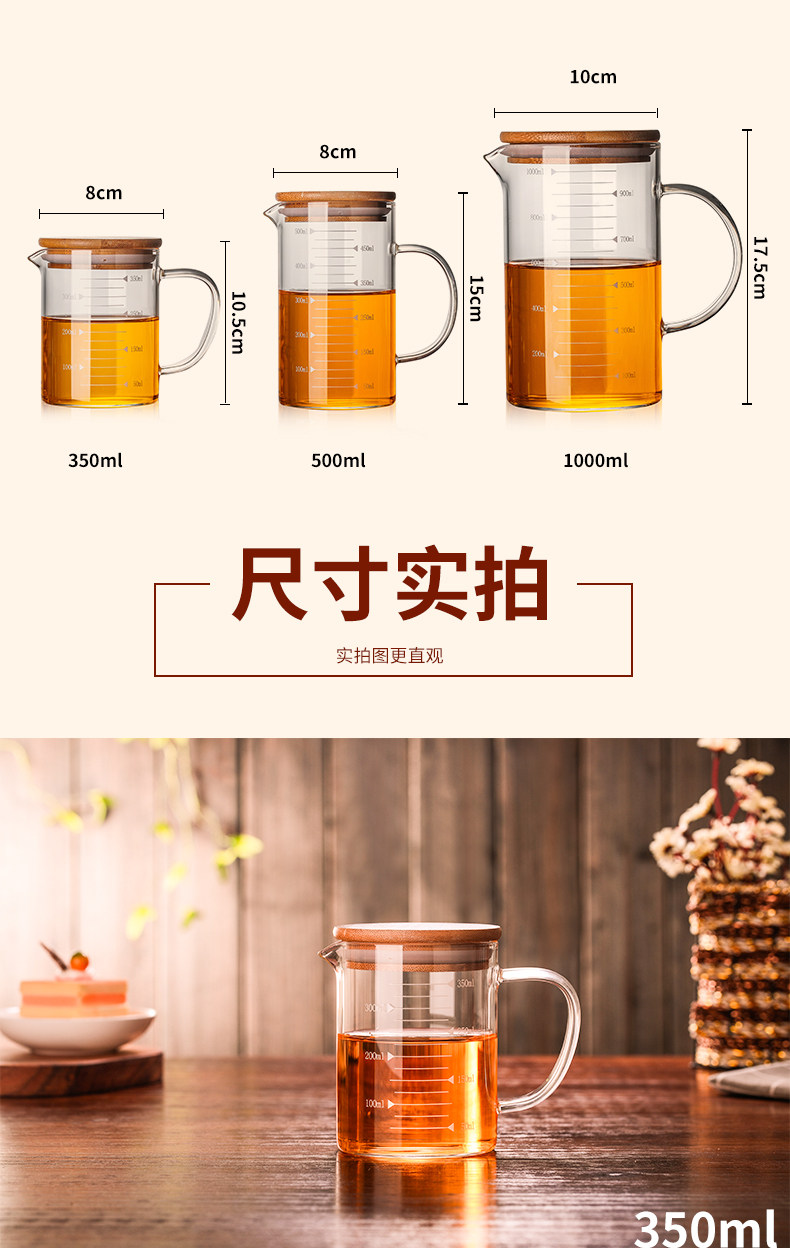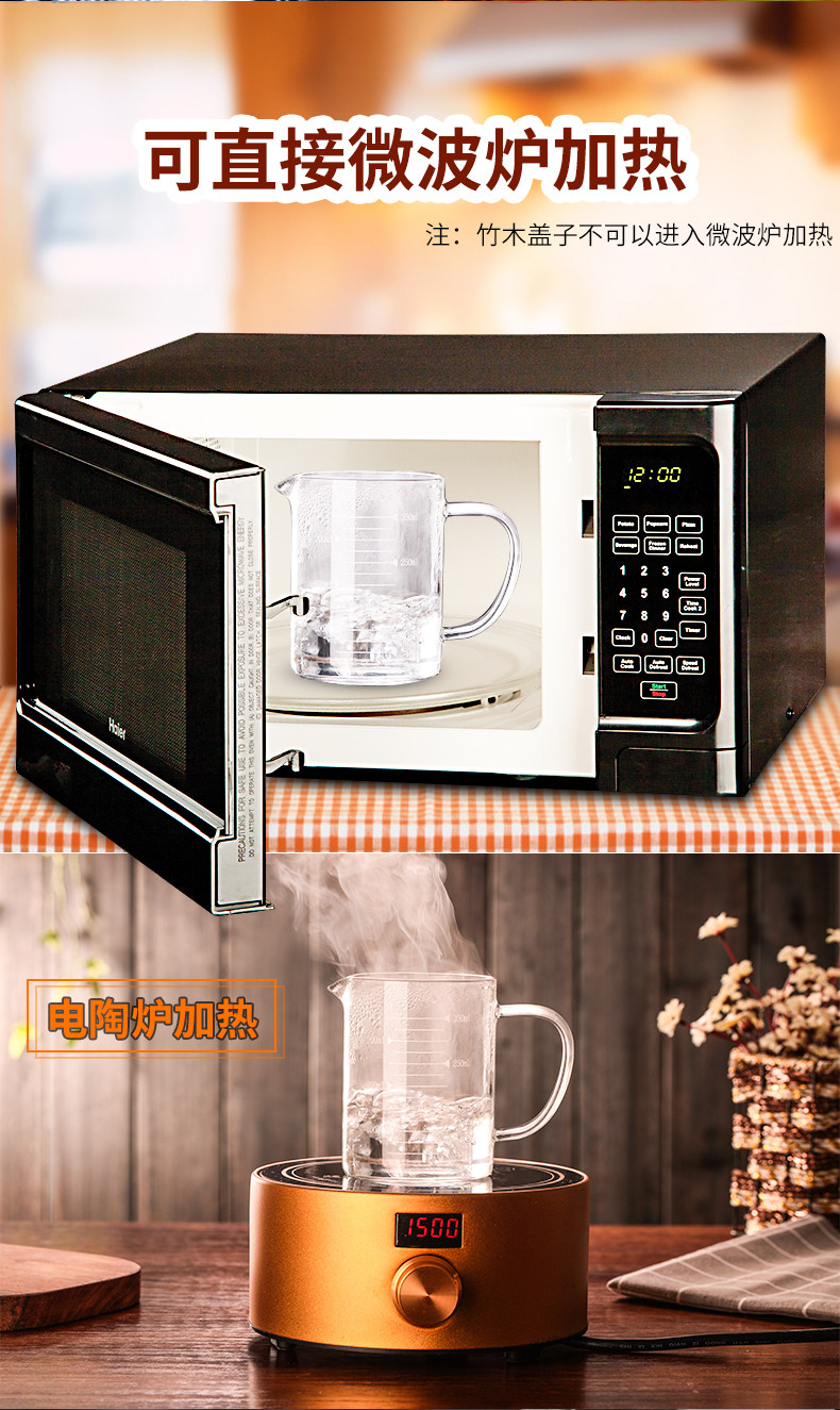 牛奶杯带刻度的水杯儿童早餐杯子宝宝带盖玻璃家用微波炉热奶量杯