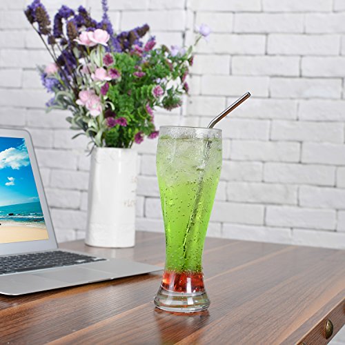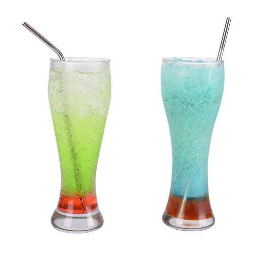 Set of 8pcs extra long stainless straws (4 bent + 4 straight + 1 cleaning brushes),total length of 10.5inch, perfect for drinking cold bevarage, sipping cocktail,coffee,ice tea,cappuccino etc.