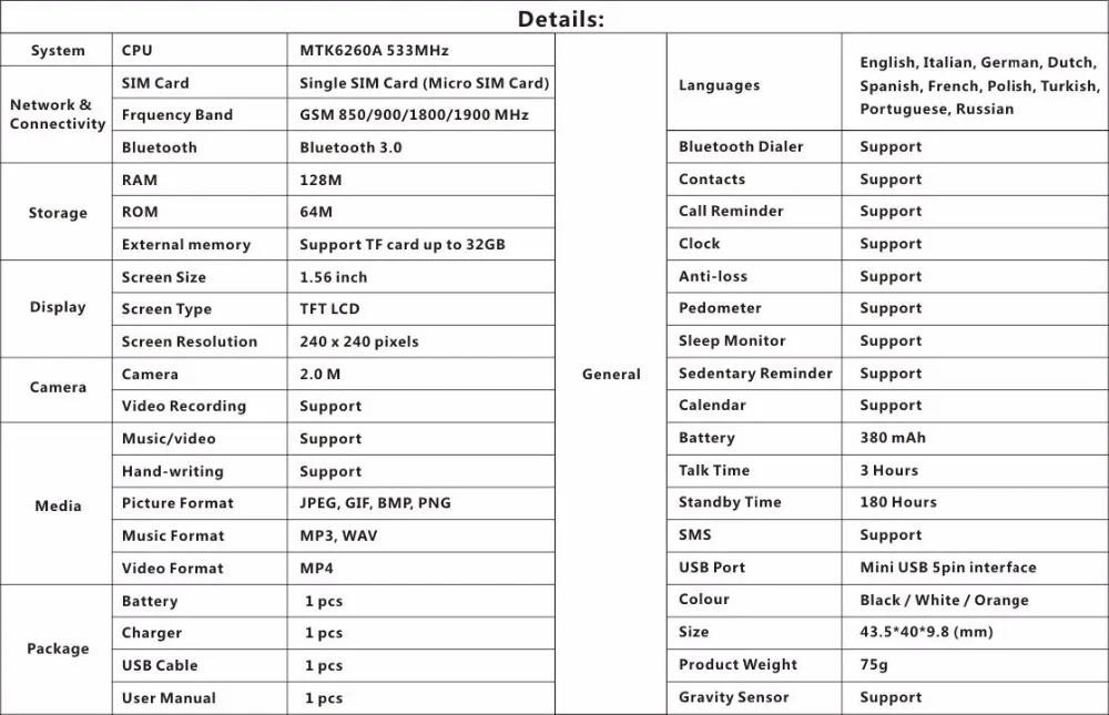 Function:Dial Call,Message Reminder,Answer Call,Passometer,Interactive Music,Call Reminder,Sleep Tracker