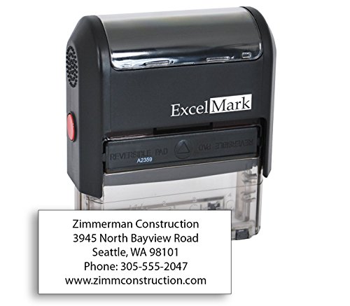 -. Feature : Personalize your own custom stamp - Hit the "Customize Now" button to add your information / Self-inking design allows for quick, reptitive stamping, and the two-sided, reversable ink pad gives you double the impressions. Ink pads are replaceable and re-inkable with ExcelMark self-inking ink. / Attractive, clear mount allows you to accurately line up your stamp / Choose your ink color: black, red, blue, purple, green or brown