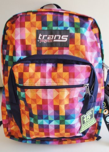 -. Brand : JanSport -. Color : Multicolor -. EAN : 0889587284382 -. Feature : Backpack is about 16in X 12in / Backpack has two large compartments for storage with zippered closure / Backpack has two smaller front pockets with zippered closure / Backpack has one side mesh pocket / Backpack has two adjustable shoulder straps and one hook holder, great for carrying by hand -. IsAutographed : 0 -. IsMemorabilia : 0 -. Label : Jansport -. Manufacturer : Jansport -. PackageQuantity : 1 -. ProductGroup : Sports -. ProductTypeName : OUTDOOR_RECREATION_PRODUCT -. Publisher : Jansport -. Studio : Jansport -. Title : Trans by Jansport Supermax Multi Spectrum Multi Color Backpack -. UPC : 889587284382