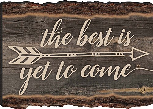 The Best Is Yet To Come Arrow Rustic Bark Look Wood Sign Magnet