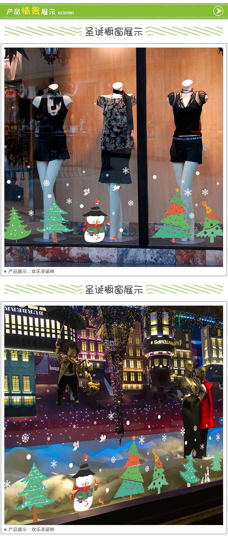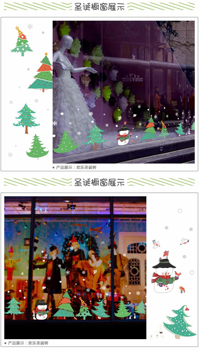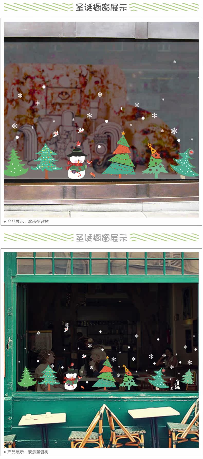 圣诞树林踢脚线墙贴圣诞节雪人商场酒店铺橱窗玻璃贴画窗户门贴纸