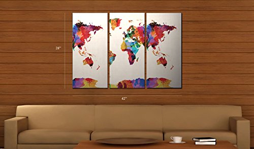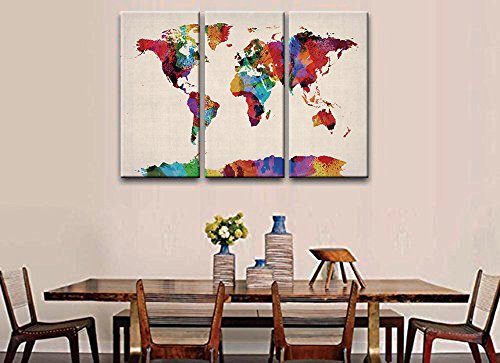 Canvas Prints Vintage World Map Painting Picture Print on Canvas Framed Ready to Hang for Wall Art Decor Introduction: * canvas print printed at hi-res on quality thick artist premium canvas with extra mirrored border. * canvas stretched professionally over sturdy wooden stretcher fir frame which is kiln dried. * each panel wrapped around sides resulting in a top quality 3-D effect interior decor art work and hook attached. * each print panel put into a plastic bag and then put into solid master carton for shipping. Benefits: This art work comes already framed ready to hang, each panel has a wide hook already attached for easy hanging. 30 days money back guarantee after receipt gives you assurance of a quality product at an affordable price. Well packed and dispatched fast via courier. Great Inspirational Art for Wall Decor: Perfect choice for wall decor such as living room, bedroom, guest room, bathroom, dinning room, meeting room, hallway, nurseries, coffee house, condo house, hotels, inn, Spa, Lounge, Sauna and other spaces of home, office, business, reflection and relaxation. Perfect Gift Idea: For wedding, anniversary, thanksgiving, christmas, mother's Day, father's Day, valentine, birthday and others. IMPORTANT FOR SIZE: Please note display pictures are only for illustration purposes. They were not taken in real display rooms and do not represent the real size of the print set. They are just as an idea to help you being aware of how this canvas art print looks like in a room. Please measure your wall properly and make sure you pick the right size.Feature