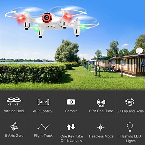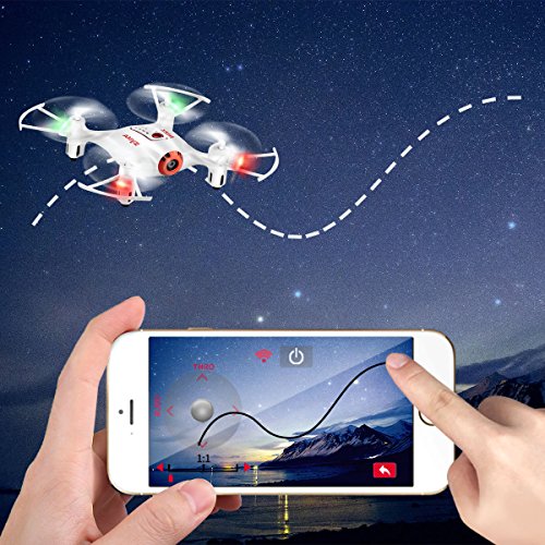 DoDoeleph FPV Mini Drone Syma X21W Kleine UFO Drohne Mit Wifi Kamera Echtzeit Quadrocopter Flugstrecke One Key Start /Landung 3D Looping APP Steuerung Kopflos Modus Hohehalte 2.4 GHz Funkfer