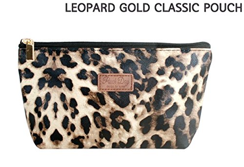 Cosmetic Makeup Pouch Travel Bag by J.O. Billion / Leopard Gold Classic Pouch / PouchDay Gold Zipper Bag / Handmade Label Water Proof Good Quality...