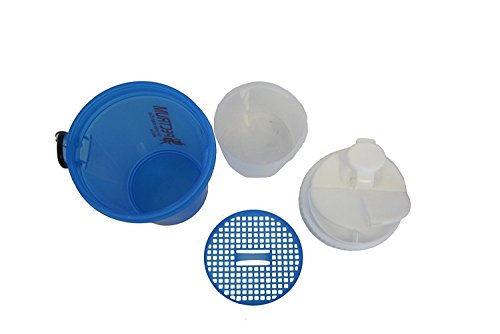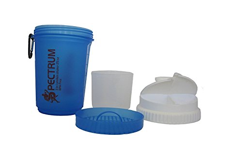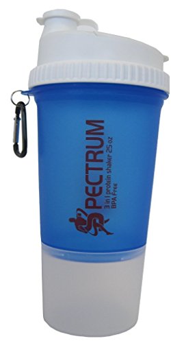 Protein Shaker Cup with Clip 25 Oz. Extra Large 3 in 1 By Spectrum (1, Blue and White)