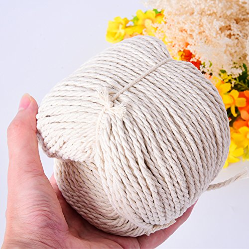 Pangda Cotton Macrame Cord Twine, Craft Rope Yarn for DIY Plant Hanger Wall Hanging Decoration, Natural Color (150 m Long, 4 mm Diameter)