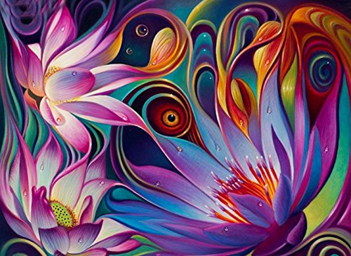 EOBROMD 5D DIY Diamond Painting, Crystal Rhinestone Diamond Embroidery Paintings Pictures Arts Craft for Home Wall Decor, Full Drill - Lotus