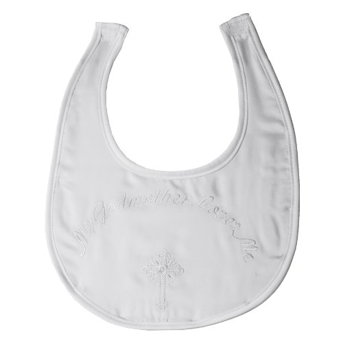 -. Binding : Apparel -. Brand : Lauren Madison -. Department : unisex-baby -. Feature : My godmother loves me' is embroidered on the front / The front is satin, the back is cotton terry / Velcro closure / packaged in a special Keepsake BagTM -. Label : Haddad Brothers Clothing -. Manufacturer : Haddad Brothers Clothing -. ProductGroup : Apparel -. ProductTypeName : ACCESSORY -. Publisher : Haddad Brothers Clothing -. Studio : Haddad Brothers Clothing -. Title : Lauren Madison boy girl Christening Baptism My Godmother Loves Me Unisex Infant Reversible Bib