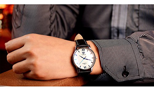 -. Title : メンズ 男性 腕 時計 レザー 革 ベルト ビジネス ウォッチ シンプル スーツ 軽量 (ホワイト&ブラック)