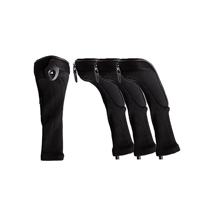 Andux 롱 넥 골프 하이브리드 클럽 헤드 커버 교환 가능한 번호 택 첨부 와 4 개세트 (블랙)