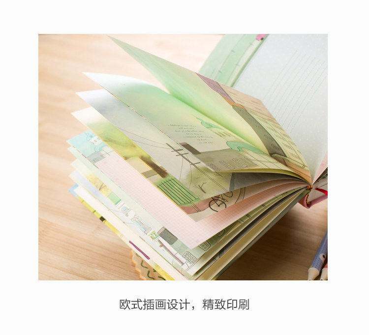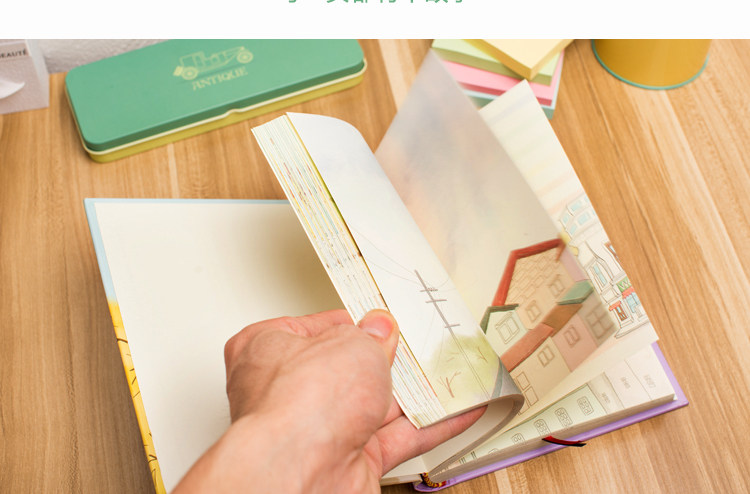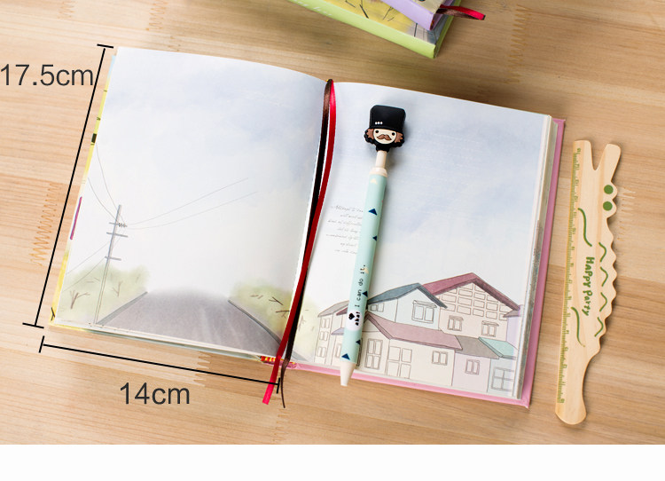 韩国复古日记本卡通插画加厚笔记本硬面个性韩式清新彩页本子