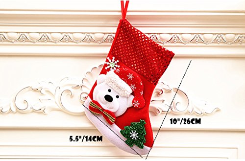 Kinteshun Christmas Santa Stockings Candy Bag,Assorted Flannel Santa Gift Socks Hanging Accessories for Xmas Tree Decoration(4pcs,Medium Size,10")