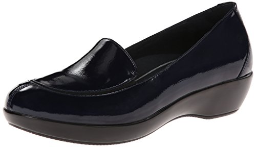 Work or play, relax into the comfort offered by the Dansko Debra pump, part of the Dansko Pasadena Collection. Bridging the gap between "dress" and "casual," this women's slip-on pump is offered in premium Nappa leather, crinkle patent leather or printed suede, with elastic at the vamp for a touch of give. A leather lining enhances breathability; contoured to deliver grip, the leather-topped EVA footbed features memory foam, and can be removed and replaced with a personal orthotic, as desired. The Dansko Debra dress loafer is finished with a platform demi-wedge polyurethane sole unit for shock absorption and a secure stride.Feature