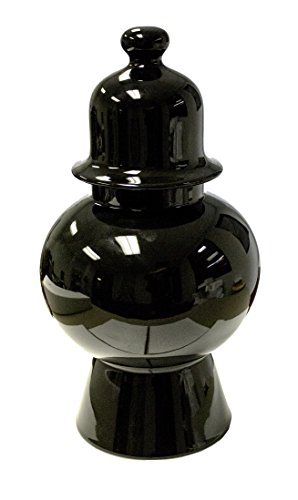 Decorative Ceramic Covered Urn, 9.25" x 9.25" x 17.5", Black
