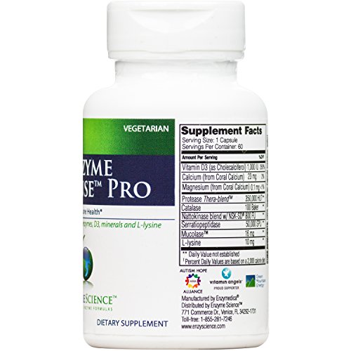 Enzyme Science Enzyme Defense 60 Caps - Our immune systems regularly encounter environmental invaders such as viruses, bacteria, fungus, chemical pollution, and environmental toxicity. Maintaining an adequate immune system to elicit a healthy immune response is essential. Enzyme Defense? contains a high potency proteolytic enzyme blend formulated with vitamin 03, L-lysin and trace minerals to support and promote healthy immune function. Enzymes are responsible for catalyzing and regulating biochemical reactions that occur within the human body. Specifically, enzymes are highly involved in regulating the body's digestive and metabolic processes, thus making them essential for cellular function and overall well ness. In particular, proteolytic enzymes, also known as proteases, are responsible for supporting digestion and metabolism by breaking down protein. Supplemental proteolytic enzymes have an established history of use for supporting immunity and promoting general wellbeing. Supplemental proteases administered orally on an empty stomach have been shown to be absorbed and carried into the bloodstream. While in the bloodstream, proteases bind to alpha-11 macroglobulin (A2M). As a complex, the bound protease circulates through the body to become part of the immune system. The protease functions therapeutically by promoting cellular repair and recovery in addition to encouraging a healthy inflammatory response. Undesirable microorganisms including viruses, yeast, fungi, bacteria, and parasit's contain a protein matrix or are often protected by protein. Present in the blood stream, the proteindigesting enzyme is capable of digesting the microorganism's protein coating therefore exposing the organism to degradation. Once digested, the body eliminates remains of the organism through its normal processes of purification.Feature