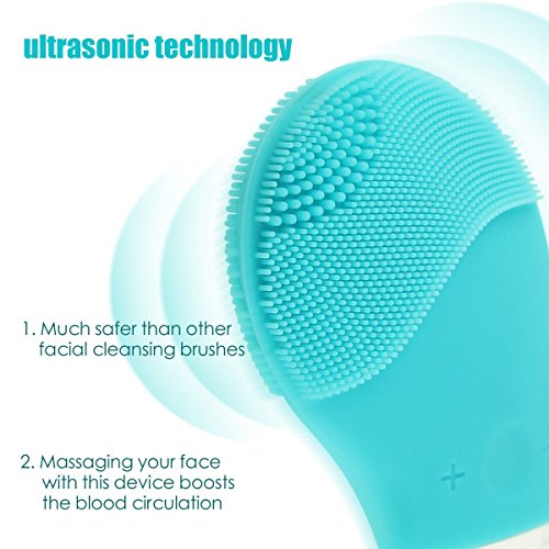 THB Sonic Facial Cleansing Brush Silicon Vibrating Waterproof Face Cleanser and Massager (Sky Blue)