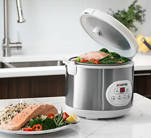 Are you too busy to make home cooked meals? Does cooking feel like a challenge and a struggle? Make cooking mouthwatering and nutritious meals at home easy with this rice cooker from Gourmia. A digital display makes it convenient and easy to cook rice with options for cooking brown and white rice. A 25 minute countdown displays before rice is completely cooked and once the cooking process is complete the keep warm function can be used for up to 10 hours so that you can keep rice hot until it's ready to eat.INCLUDES: