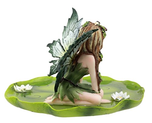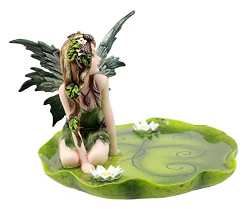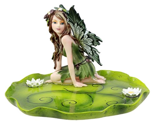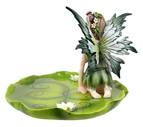 Ebros Gift Green Absinthe Fairy Kneeling On Lotus Petal Soap Dish Figurine Jewelry Dish Plate Vanity Decor 6.25"Long