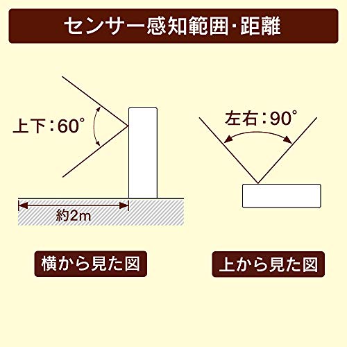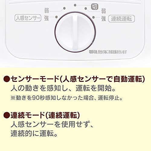 人感センサー付きで、人がいない間は運転を停止するので、節電にもつながります。