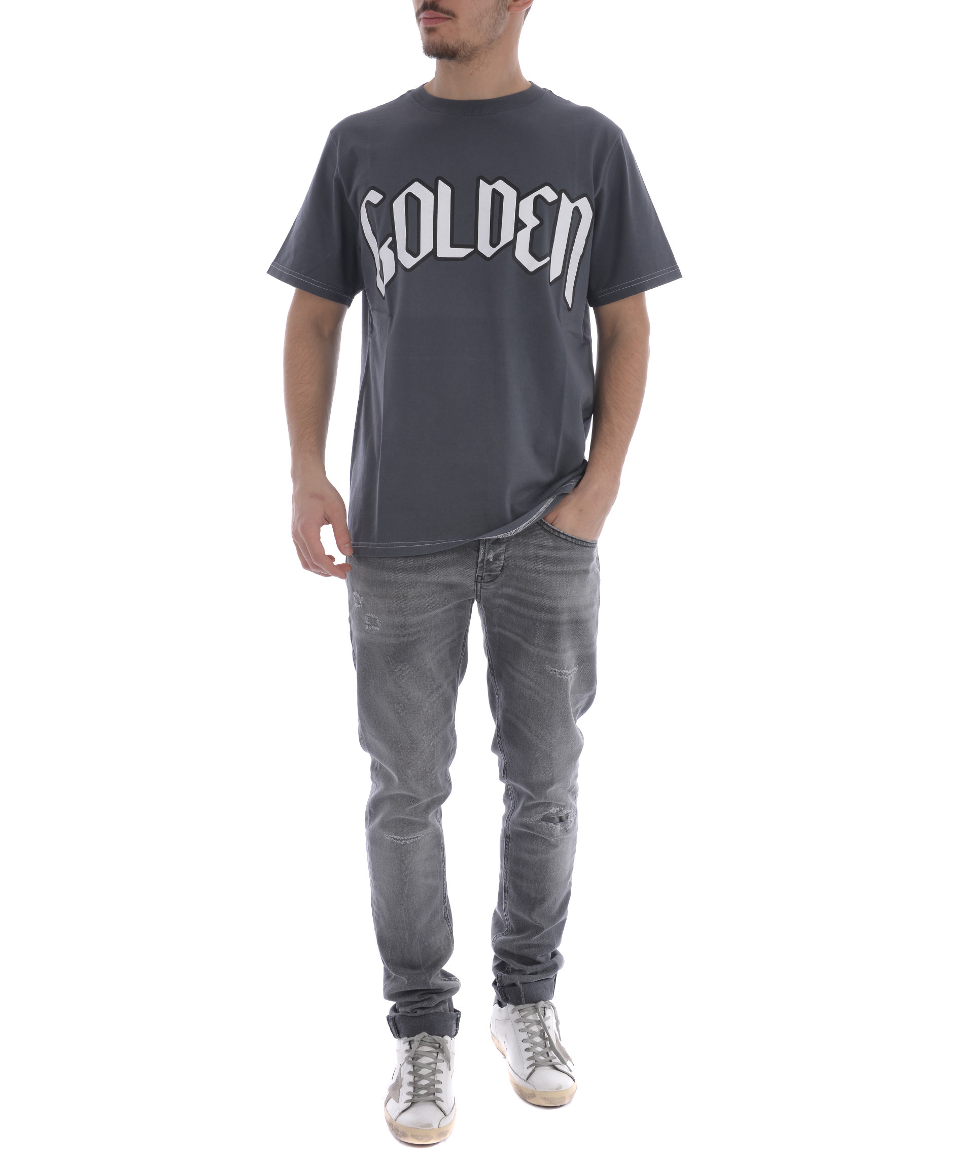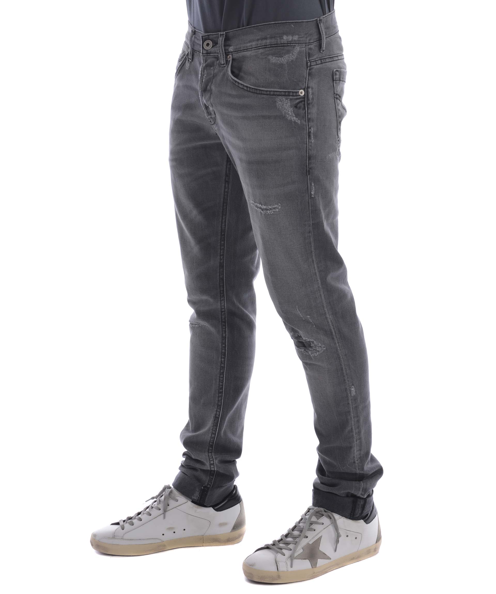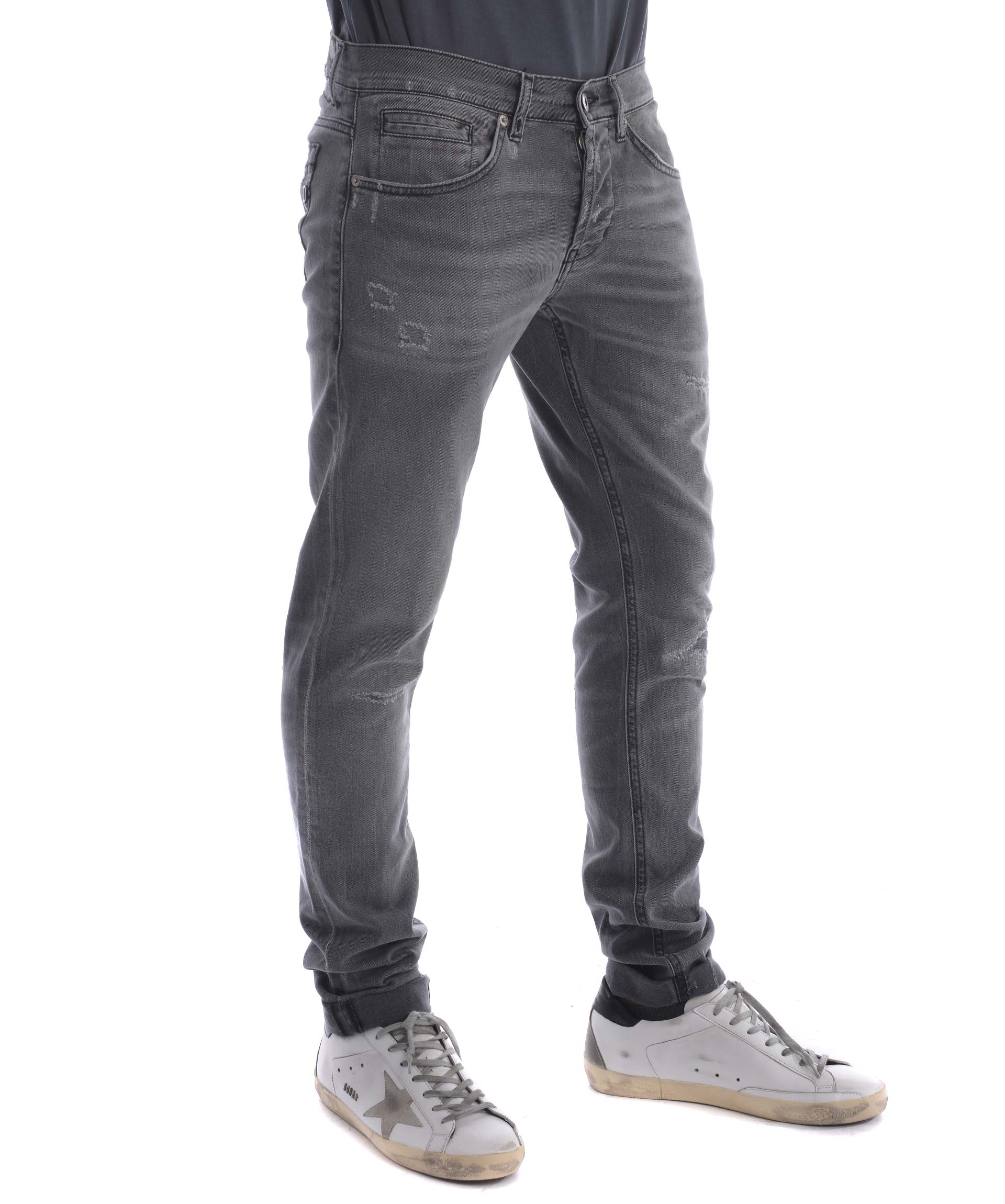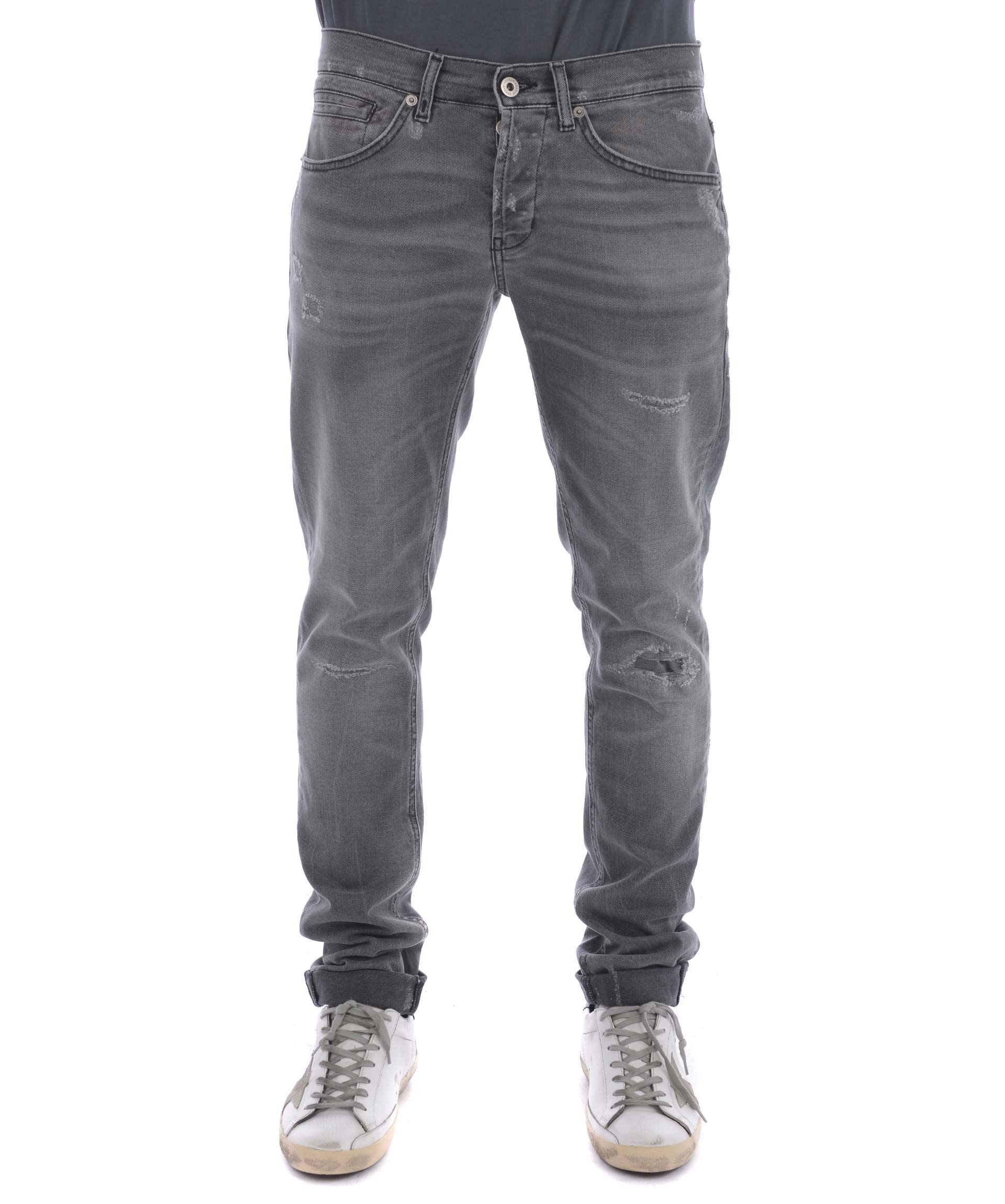 George Jeans from Dondup: Grey George Jeans with button and zip closure at front, five pockets design, waistband with belt loops and silver-tone detail at the back.