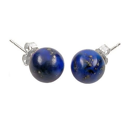 -. Title : 14K White Gold 8mm Natural Blue Lapis Lazuli Ball Stud Post Earrings