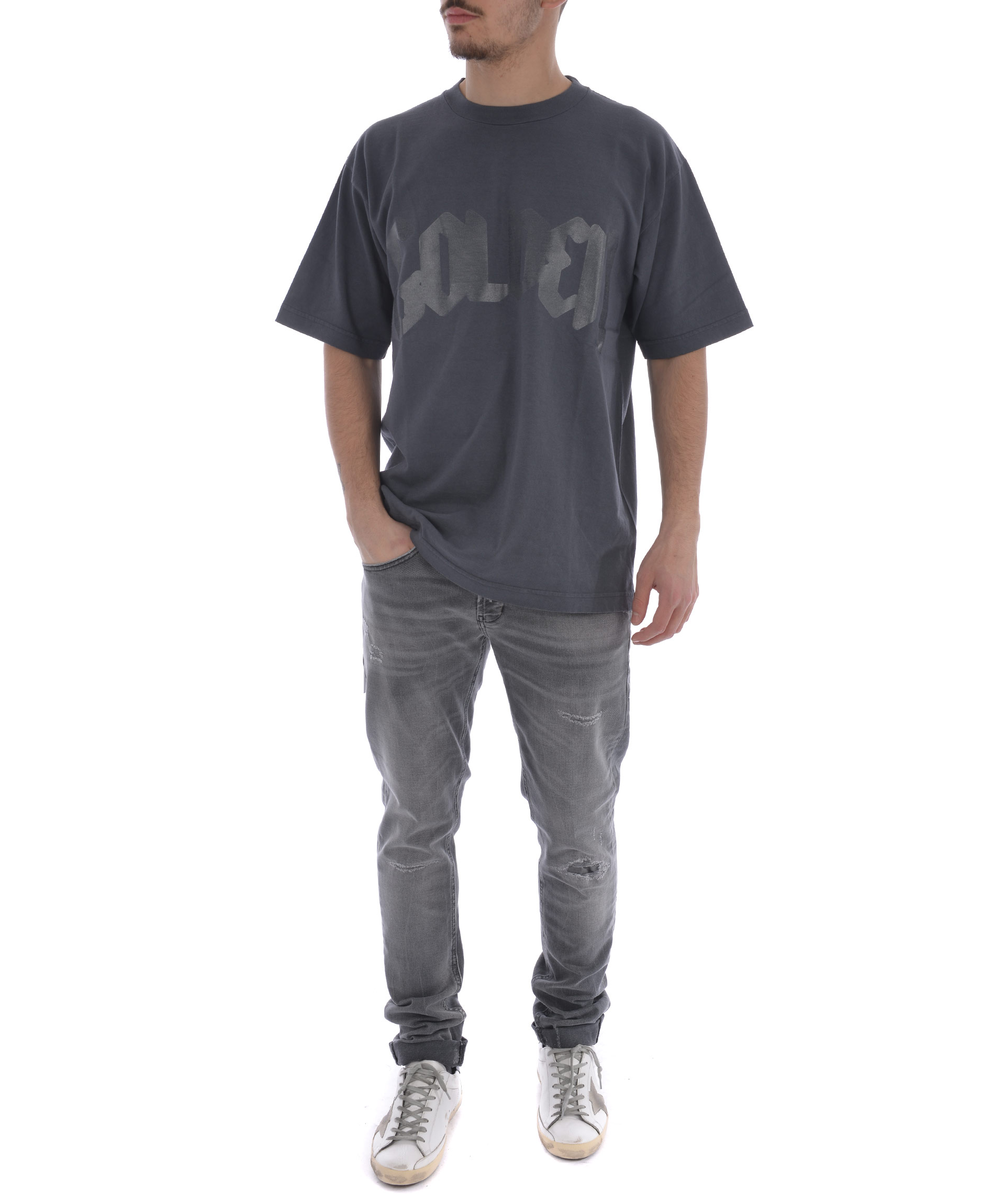 Golden Print T-shirt from Golden Goose: Dark Grey Golden Print T-shirt with round neck, short sleeves, oversized fit and straight hem.