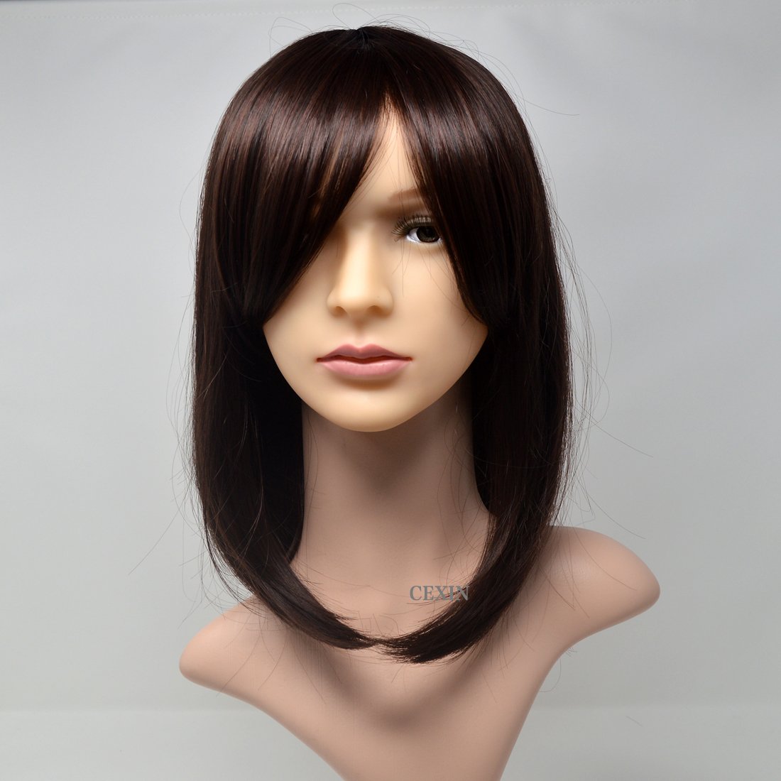 Product Name: CEXIN (セ シ ン) Ladies' Wig Full Wig Oblique Bangs Bob Medium Super cute sweet high quality heat resistant 180 degree hot wearing hair net