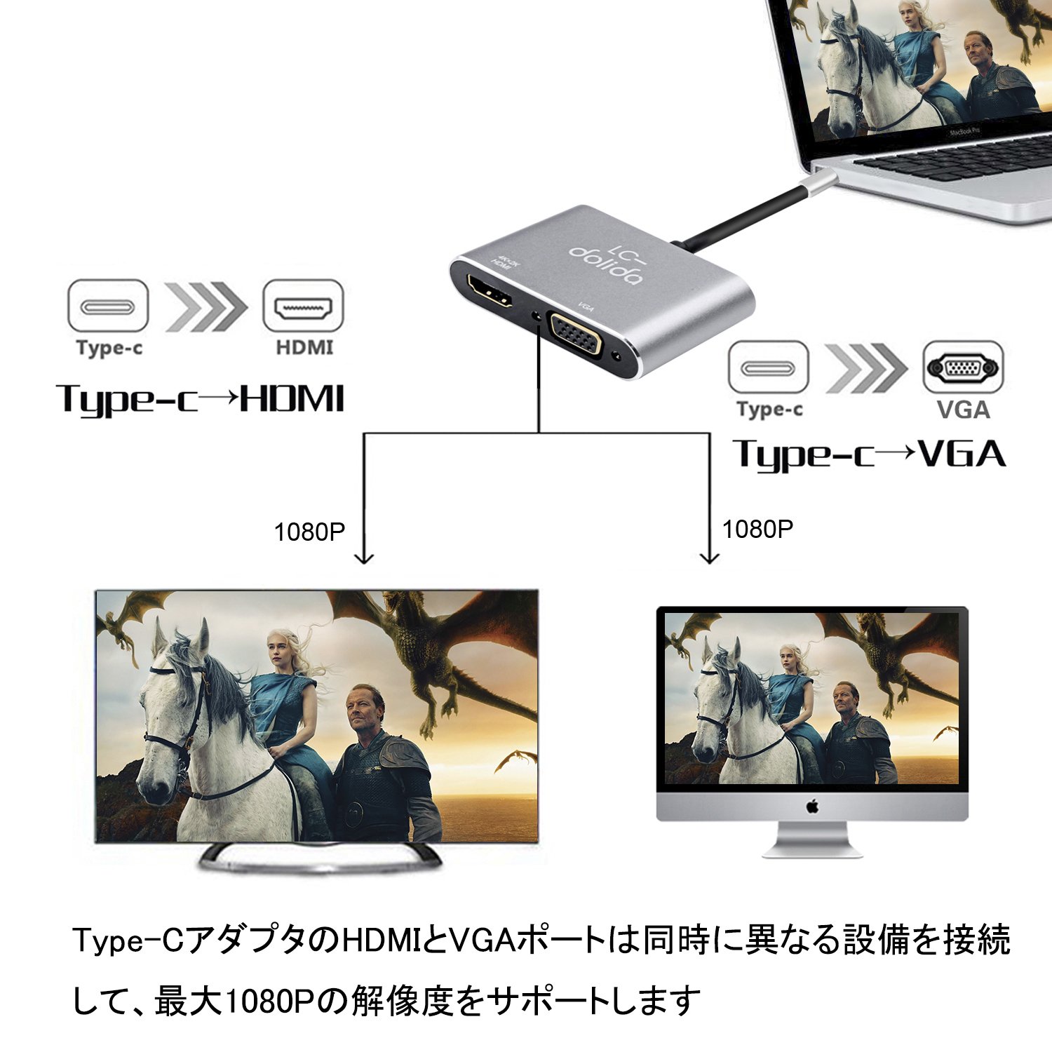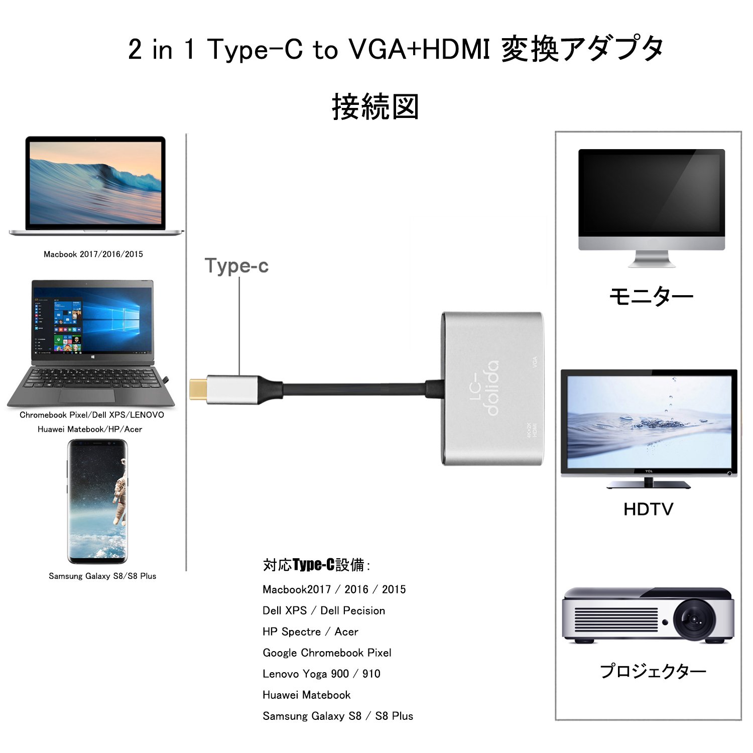 ① This adapter can simultaneously support HDMI and VGA equipment and can support resolution of up to 1080P.