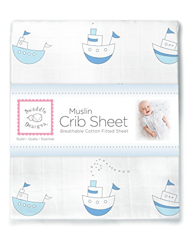 -. Title : SwaddleDesigns Cotton Muslin Crib Sheet, Pastel Blue Little Ships