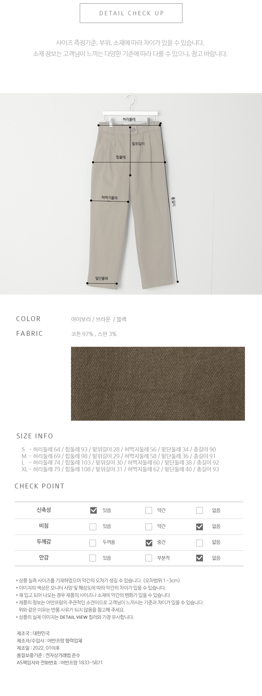 텐션감 좋은 속기모 코튼 배기 팬츠
