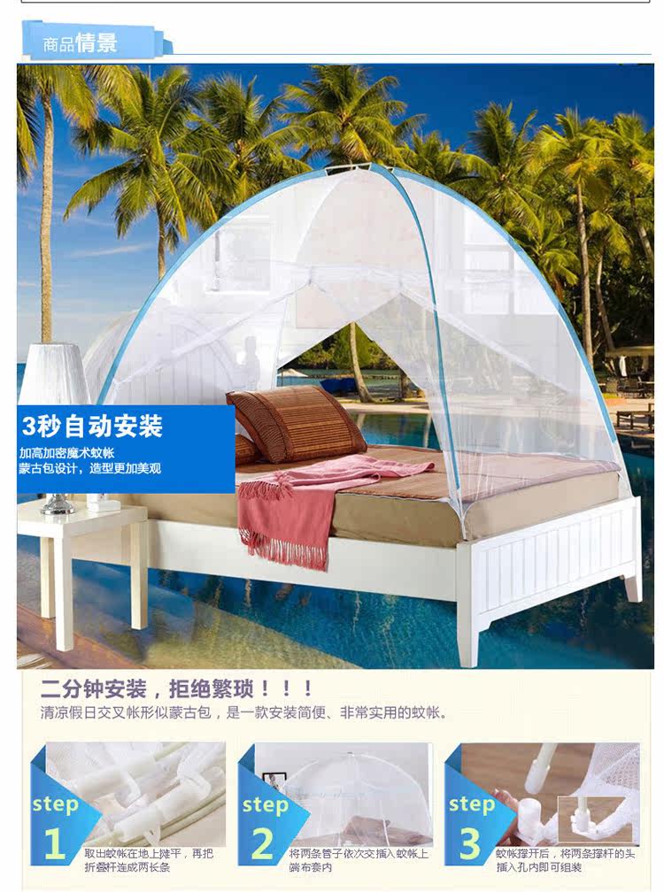 款式: 蒙古包式 安装方式: 免安装 门数量: 双门适用 床尺寸: 1.2m(4英尺)床 1.5m(5英尺)床 1.8m(6英尺) Style: yurt formula Installation: Free installation Number of doors: two-door applicable Bed size: 1.2m (4 feet) bed 1.5m (5 feet) bed 1.8m (6 feet)