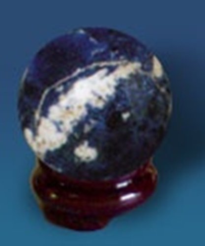 -. Feature : Sodalite Sphere & Wooden Stand / Sodalite is blue with white inclusions / Size: 45mm (approx.2").