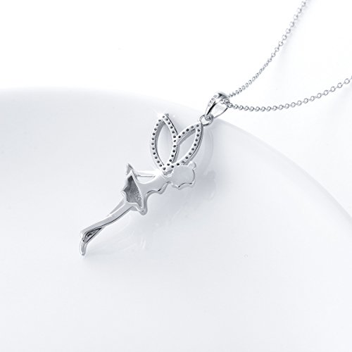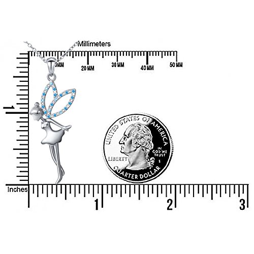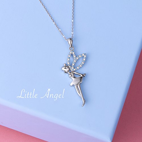Material: Solid .925 Sterling Silver Fairy with Angel Wings Pendant Necklace with White Gold Plated; Finish: High Polish