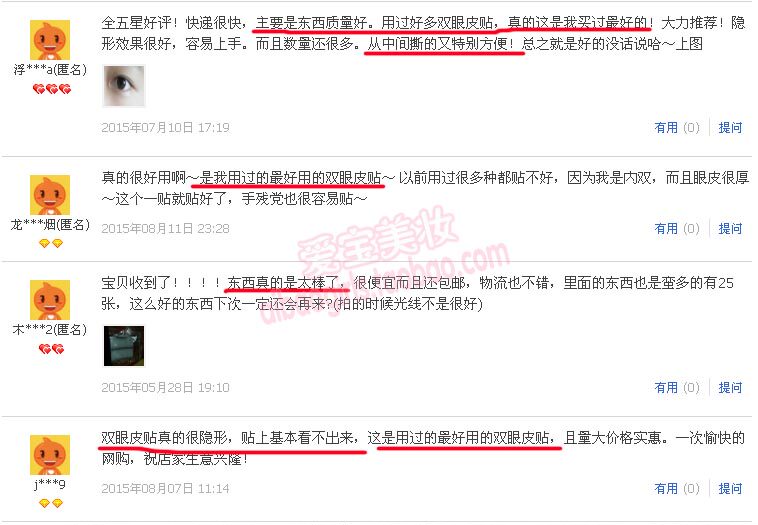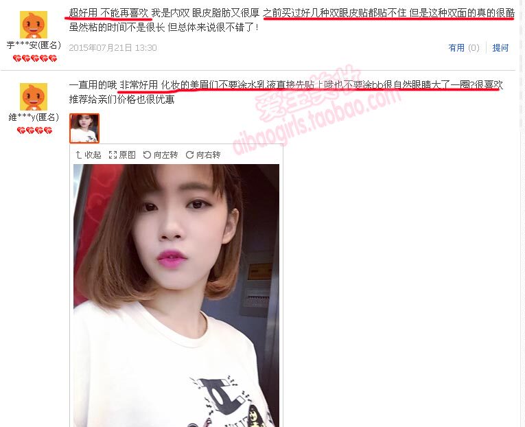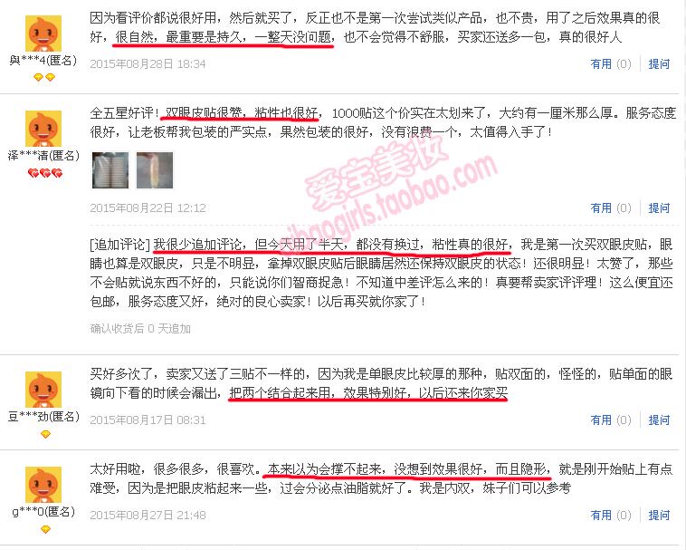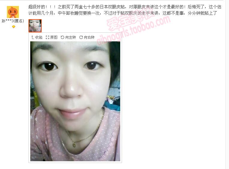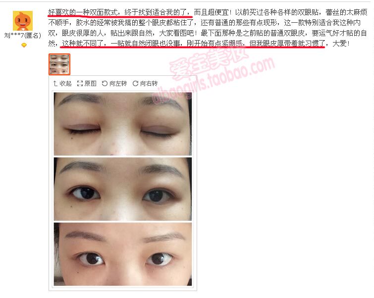 此款眼贴双面都有粘性,比起一般的单面眼贴粘度更大,对于一些不好固定形状的眼型,如特别小的眼睛,从来没有贴过双眼皮的眼睛等等,能够起到完美的固定作用,贴上它,可以将眼贴上方与下方的皮肤粘合在一起,从而形成完美的皮肤痕迹,看上去更象自然的双眼皮;