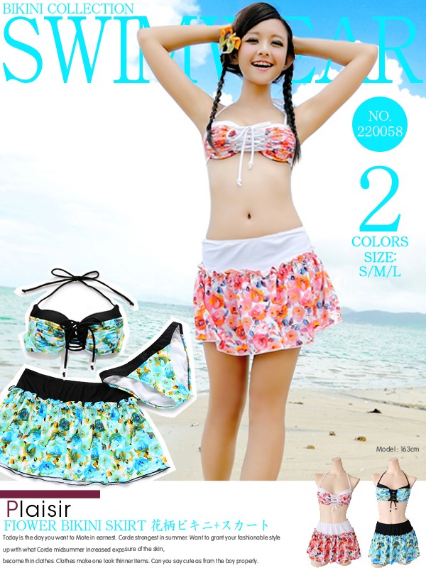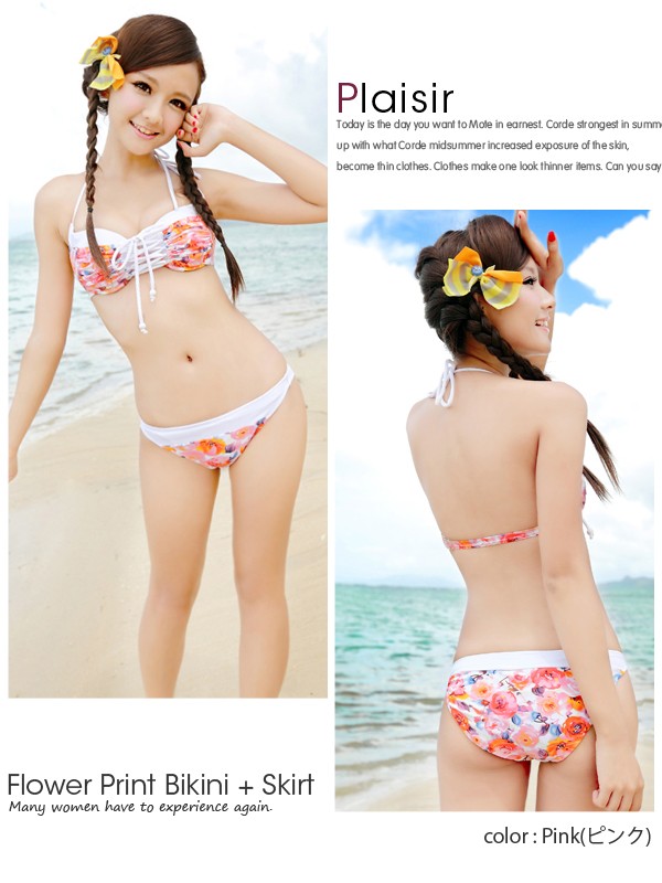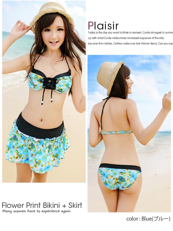 スカートが付いたビキニ3点セット!