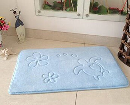 Yzakka Soft Coral Microfiber Mildew Resistant Memory Foam Bath Mat Antibacterial Non Slip Absorbent Bathroom Mat Rugs for Kids, Washable and Quick Drying, 20 x 32 Inches, Light Blue Turtle