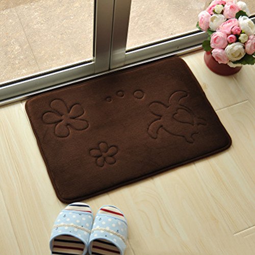 Yzakka Soft Coral Microfiber Mildew Resistant Memory Foam Bath Mat Antibacterial Non Slip Absorbent Bathroom Mat Rugs for Kids, Washable and Quick Drying, 20 x 32 Inches, Coffee Turtle