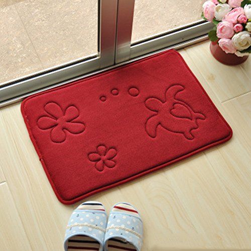 Yzakka Soft Coral Microfiber Mildew Resistant Memory Foam Bath Mat Antibacterial Non Slip Absorbent Bathroom Mat Rugs for Kids, Washable and Quick Drying, 20 x 32 Inches, Red Turtle
