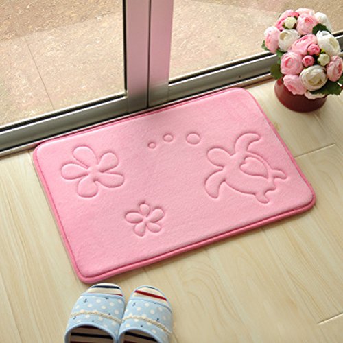 Yzakka Soft Coral Microfiber Mildew Resistant Memory Foam Bath Mat Antibacterial Non Slip Absorbent Bathroom Mat Rugs for Kids, Washable and Quick Drying, 20 x 32 Inches, Pink Turtle