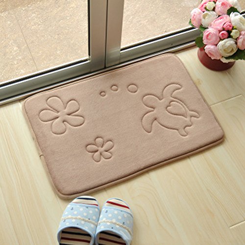 Yzakka Soft Coral Microfiber Mildew Resistant Memory Foam Bath Mat Antibacterial Non Slip Absorbent Bathroom Mat Rugs for Kids, Washable and Quick Drying, 20 x 32 Inches, Kahki Turtle